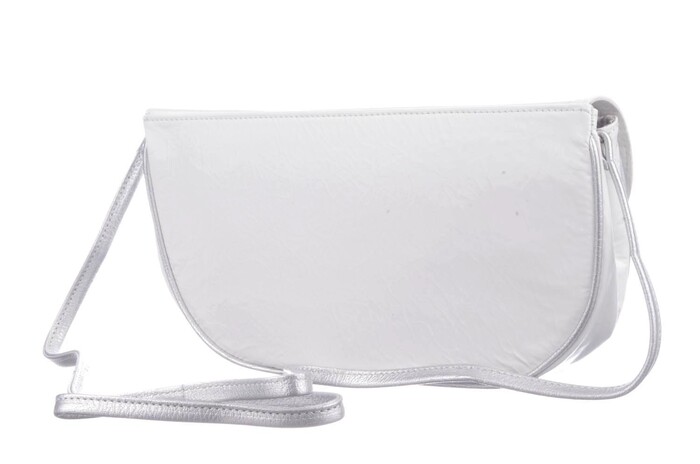 Schoudertasje dat ook als clutch gedragen kan worden. Met een enkel vak en een| ritsvak aan de binnen achterzijde. Het hengsel is zilverkleurig net als het| randje om de tas. Met de bijpassende pump kunt u op elke trouwerij en zomerfeest| feestelijk verschijnen.|