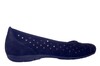 Ballerina op flexibele zool en met comfortabel voetbed; in zwart nubuk met luchtige gaatjes draagt heerlijk met blote voeten; wij bieden dit model ook in blauw, taupe en brons metallic aan.