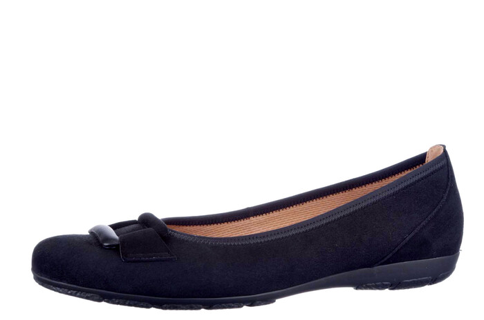 Gabor is een familiebedrijf uit Zuid-Duitsland en al sinds 1949 een toonaangevende schoenfabrikant. Zij bieden een onwaarschijnlijk brede collectie van allerlei modellen waarvan de meeste modellen tot maat 43,5 en een aantal series tot maat 45 lopen. Gabor hanteert drie wijdtematen: F (smal/gewoon); G (gewoon/ruim): H (breder). Er zijn modellen met super comfortabele zolen vanwege extra demping en meer ruimte op de bal van de voet. De collectie kenmerkt zich door stijlvolle en tijdloze ontwerpen waarbij zeker ook de modetrends worden gevolgd. Hoewel het merendeel van de collectie in klassieke tinten wordt uitgevoerd kiezen zij regelmatig voor uitdagende kleuren en materialen. Gabor: voor ieder wat wils en heel vriendelijk geprijsd. Deze klassieke ballerina op hovercraft zool loopt als een zonnetje, in zwart en donkerblauw suede.