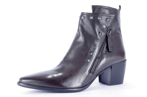 Gladde enkellaars op spitse leest en stevige blokhak van 5,5 cm. Bijzonder aan| dit model is de combinatie van de zware blokhak en de ranke leest, zo krijgt| dit model een elegant-stoere look. Leuk bij een jeans of andere skinny, in hele| mooie donkere wijnrod leer.|