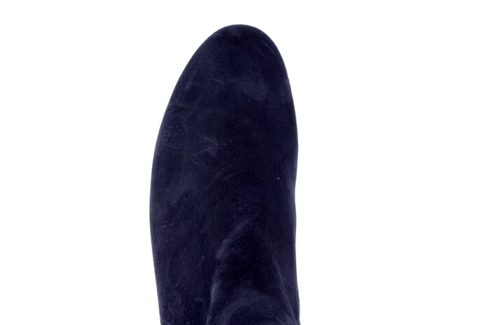 Charmant plat enkellaarsje met klein gespje in de hiel. De schacht sluit| mooi aan de enkel In zwart leer en in donkerblauw suède.|