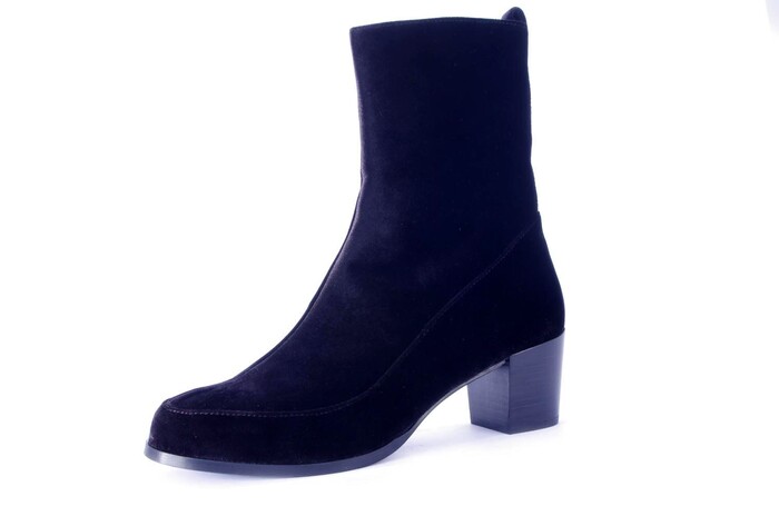 Strak gesneden en mooi getailleerd enkellaarsje op blokhak van 5 cm.| Semi-orthopedisch en toch helemaal hip! Bijzonder is de ronde-spitse leest en de| uitvoering in velvet. De voering is van leer en met verwisselbaar voetbed. In| blue- en black velvet.| Ervaring van onze verkoopster: "Het zit meteen heerlijk. Normaal gesproken| zitten schoenen meestal een beetje strak aan de voorkant en moet ik ze eerst| uitlopen, maar bij deze heb ik daar geen last van! Het voetbed zit lekker en| loopt ook niet alsof er een zo een hoge hak op zit."|