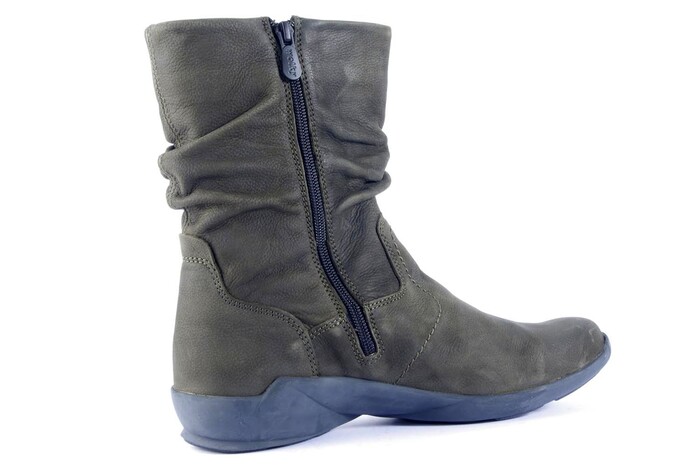 Casual kuitlaarsje van Wolky op sportieve zool en met geplooide| schacht. Dit model zit al jaren in de collectie van Wolky en wordt soms een| beetje aangepast kwa leest of in detaillering maar de kenmerkende geplooide| schacht blijft geliefd. Dit jaar in zwart en groen nubuk.|