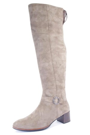 Deze over-de-knielaars combineert mode met het comfortabele voetbed van| Softwaves. De schacht is in principe voor de gemiddelde kuitomvang maar met 40-| 41 cm schachtwijdte past ook een wat vollere kuit. Met het koortje aan de| bovenkant kan de schacht aangesnoerd worden maar ook nonachalant los gedragen| worden. De blokhak van 4 cm loopt prima. In taupe- en in zwart suède.|