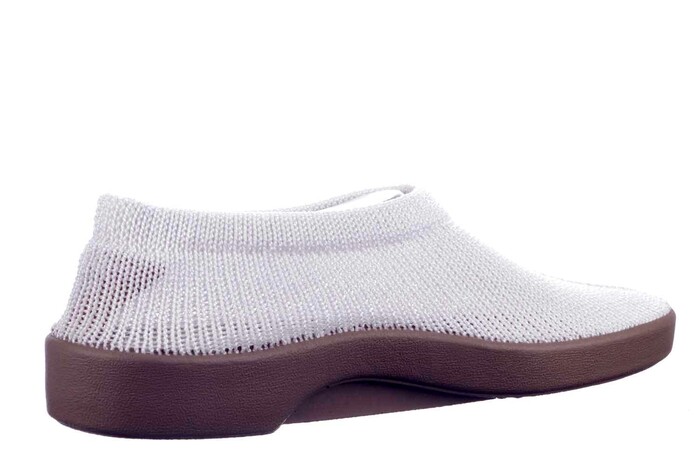 De "Classic line" van Arcopedico. Het bekende gebreide schoentje op anatomisch gevormd voetbed. De lichtgewicht antislip zool is biologisch afbreekbaar. Ze kunnen op 30 graden in de wasmachine. Dit Portugese buitenschoentje wordt ook vaak als pantoffel binnenshuis gedragen.