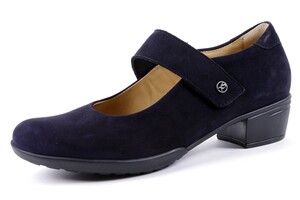 Zachte en flexibele bandpump met comfortabel voetbed en stevig contrefort; de| klittebandsluiting over de wreef sluit mooi aan en het voetbed is verwisselbaar;| ook zeer geschikt voor wie moeilijk op een hakje loopt; dit topmodel bieden wij| in meerdere kleuren aan: in beige-, donkerblauw-, taupe- en in rood nubuk en in| grijs metallic leer; zwart leer is op bestelling leverbaar.|