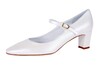 Slank gesneden trouwpump op hak van 5 cm en met dun bandje over de wreef. In| perlato off-white. Dit model staat overigens charmant onder allerlei lichte| zomerjurkjes dus u hoeft niet te trouwen om dit model aan te kunnen schaffen.|