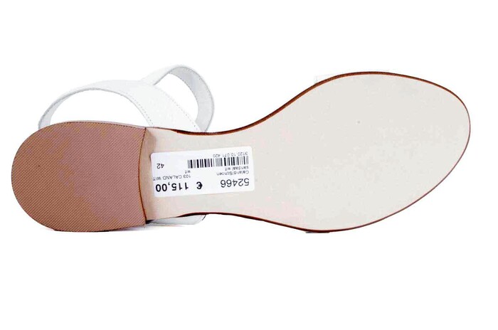 Onze Italiaanse collega's uit Venetië hebben weer prachtige Caland-sandaaltjes| en slippertjes gemaakt. Lekker plat en comfortabel maar met de onmiskenbare| Italiaanse elegantie. En op leren zooltjes, dat zien we steeds minder omdat die| wat sneller lijten maar voor het draagcomfort op warme dagen zijn leren zolen| optimaal. Laat de zon maar schijnen. We bieden in deze serie 6 modellen in| diverse kleuren: spagheti-band sandaaltjes in goud, zwart en oud zilver;| klassiek modelletje met enkel-hielbandje en wat bredere band over de voorvoet in| wit, goud en zilver; dubbele bandslipper in goud/rood en in zilver/kobalt;| slipper met jamboureeklep in zwart en citroen; slipper in zwart met studs en in| rood zonder studs; t-band sandaaltje met franjes in blauw suède.|