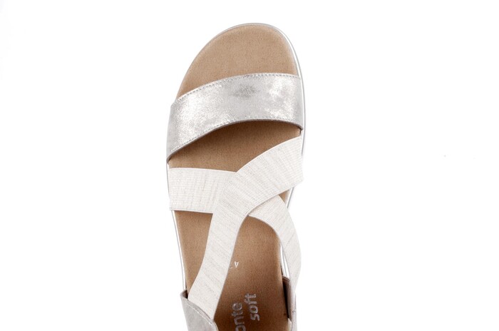 Een sandaal voor alle gelegenheden! Deze sandalen met remonte-bandjes van suède leer zijn niet alleen ultrastijlvol, ze scoren ook door hun comfort. Door de elastische inzet is het aan- en uittrekken van de schoen gemakkelijk en comfortabel. De Lite 'n Soft technologie maakt de combinatie mogelijk van een lichtgewicht buitenzool en een zacht verwisselbaar voetbed. Dankzij de lichte microvelours voering is ideaal comfort gegarandeerd. Deze topper bieden we in drie kleuren aan: wit, matgoud en oud roze. Zoolhoogte 35 mm.