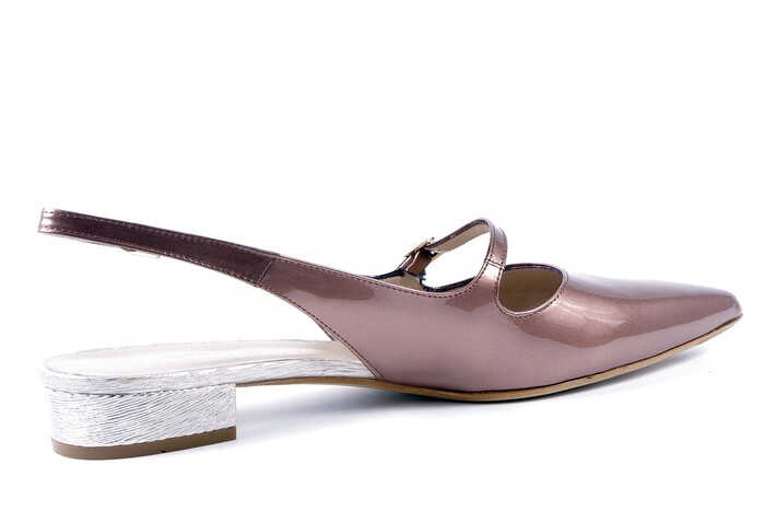 De puntleesten zijn weer terug en onze Italiaanse producent heeft deze elegante| platte slingback voor ons in drie kleuren uitgevoerd; een geraffineerd| alternatief voor de ballerina; trendy en zomers in zwart leer; nude lak en| petrol blauw lak. We hebben er ook een prachtige exclusieve tas bij te koop,| let op; deze tas hebben we slechts klein ingekocht en verkopen we alleen in| combinatie met de schoenen.|
