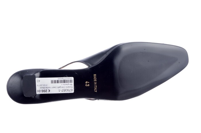 Roberto d'Angelo Shoes brengt het beste van twee werelden samen. Het Nederlandse echtpaar Marjorie en Alfred  combineren al meer dan 30 jaar verfijnd Italiaanse design met een Noord-Europese pasvorm. Dit  resulteert in schoenen die niet alleen stijlvol zijn, maar ook uitzonderlijk comfortabel en geschikt voor diverse voeten. Roberto omarmt duurzaamheid als een leidraad bij de productie en gelooft dat mode hand in hand kan gaan met duurzaamheid. Elk paar is vervaardigd met luxe leer, wat niet alleen een symbool is van vakmanschap, maar ook een statement van tijdloze elegantie en duurzaamheid. Hun motto: Gun je voeten het genot van Italiaans design. Deze elegante slingback op queenie hakje van 2,5 cm past in de retro serie van deze zomer,  onderscheidend en tijdloos. Wij kozen voor een uitvoering in zacht goud en zwart/wit combinatie.