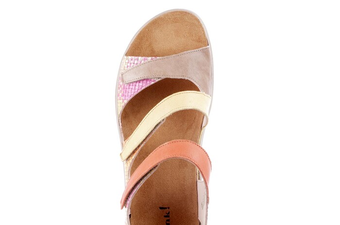 Het Oostenrijkse merk Think! heeft van meet af aan duurzaamheid tot kern van haar productie en bedrijfsvoering gemaakt. Een aantal productielijnen voldoen aan de allerstrengste eco-voorwaarden en zijn ook onderscheiden met het internationale Blue Angel predikaat van de VN: chroomvrij gekleurd leer, geproduceerd zonder chemicaliën en geproduceerd onder goede sociale werkomstandigheden. Goed voor de natuur en voor je voeten. Het zit al in de oproep om te denken (Think!) waarmee klanten worden aangesproken om onafhankelijke wegen te bewandelen. Deze drieband sandaal met klittebandsluiting past geweldig en bieden we dit seizoen in vier kleurvarianten aan; in wit en beige uni en in twee multi combinaties. Een topsandaaltje met verwisselbaar voetbed.