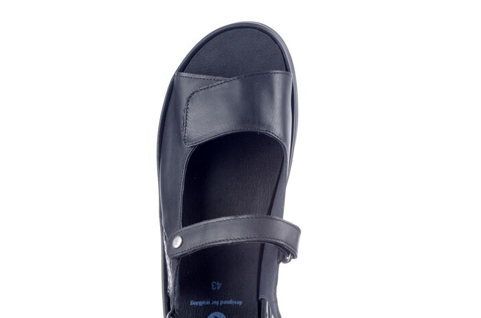 Hoewel het merk Wolky doet denken aan het Engelse ‘walk’ (to walk = lopen) was dat niet de reden om voor die naam te kiezen. De oprichters zochten in 1982 de associatie met de Nederlandse wolken; zodra je een paar aantrekt loop je op en in de wolken. Om dat gevoel te bereiken zijn de voetbedden volgens anatomisch ontwerp samengesteld uit memory foam, natuurlijke kurk en een leren toplaag. De leesten zijn kenmerkend rond, gezwaaid gevormd en laten voldoende teenruimte. De meeste onderwerken lopen door en bieden veel demping maar er zijn ook modellen op stevige hakken tot 4,5 cm. De ontwerpen zijn eigenzinnig met een knipoog naar fashion. Inmiddels is het een wereldwijd verkocht merk dat nog steeds in handen is van de familie. Deze driedubbele klitteband sandaal met verwisselbaar voetbed zit al jaren in de collectie. Never change a winning team! Ook dit seizoen in wit en zwart.