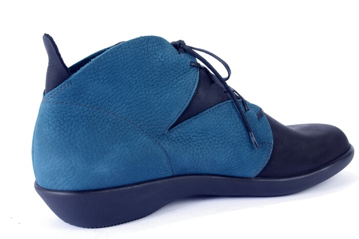 Loints heeft aantal modellen met wat zwaarder onderwerk die geschikt zijn voor| losse steun. Dit is weer zo'n eigenwijze bootie in typische Loints kleurstelling| van zwart-petrol. Mooie bloemvormige uitsnedes met als leuk detail het| uitstekende hiellipje.|