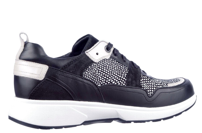 Het lijkt een trendy sneaker maar het is een zogenaamde 'stretchwalker' gebasseerd op het eeuwenoude balansprincipe uit Japan: midden onder de zool zit| een verhoging waardoor u makkelijker afwikkelt. Deze combinatie tussen balans en demping geeft het gevoel alsof u zweeft. Deze zool maakt dat u rechter op gaat lopen en makkelijk afwikkelt. Uw hele houding komt beter in balans en zo wordt de kans op rug- en nekklachten vermiderd. Dit moet u voelen dus kom ze passen als u onze winkel bezoekt. De modellen zijn er in G- en in H wijdte en in diverse kleuren en combinaties. Deze zwart/wit uitvoering oogt trendy en sportief. Het materiaal op de voorvoet is van strechleer en biedt super comfort.