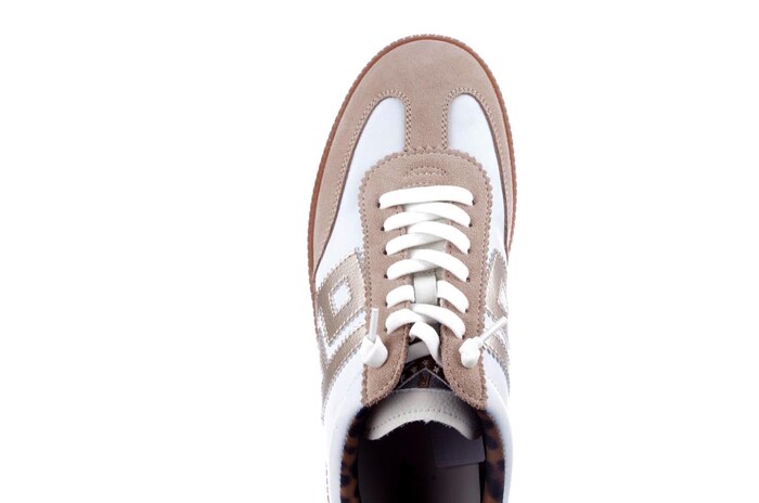 De trend van dit seizoen zijn gymschoenen op honingzolen. De eerste hardloopschoenen zagen er zo uit en het Italiaanse Maripé heeft er een mooie vertaling van gemaakt. Seciaal voor Caland t/m maat 46. MRP staat bekend om zijn innovatieve ontwerpen, hoogwaardige materialen en subtiele details. Dit ontwerp is er in twee ton-sur-ton kleurcobinaties. Deze uitvoering kan zeker ook chique gestyld worden met beige pantalon en witte top of andersom.