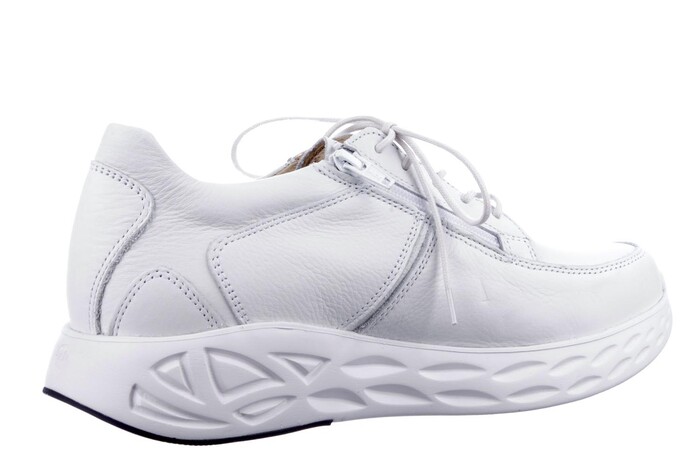 Hoewel het merk Wolky doet denken aan het Engelse ‘walk’ (to walk = lopen) was dat niet de reden om voor die naam te kiezen. De oprichters zochten in 1982 de associatie met de Nederlandse wolken; zodra je een paar aantrekt loop je op en in de wolken. Om dat gevoel te bereiken zijn de voetbedden volgens anatomisch ontwerp samengesteld uit memory foam, natuurlijke kurk en een leren toplaag. De leesten zijn kenmerkend rond, gezwaaid gevormd en laten voldoende teenruimte. De meeste onderwerken lopen door en bieden veel demping maar er zijn ook modellen op stevige hakken tot 4,5 cm. De ontwerpen zijn eigenzinnig met een knipoog naar fashion. Inmiddels is het een wereldwijd verkocht merk dat nog steeds in handen is van de familie. Deze hoog gesloten veterschoen is super comfortabel op dikke flexzool en met rits opzij voor makkelijke instap.
