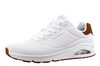 De comfortabele sneakers van Skechers hebben de wereld veroderd. Skechers experimenteert voortdurend met allerle zooltechnieken en hebben zo een toonaangevende positie bereikt. Een paar seizoenen gelden introduceerde zij het inmiddels bekende Uno model met een optische luchtbel in de hak. Deze luchbel is exemplarisch voor de demping en het lichte gewicht. Er zijn diverse uitvoeringen op vooraad in witcombinaties, camel, blauw, grijs ea. Bevat een Air-Cooled Memory-foam voor optimale demping tijdens het lopen. Daarnaast behouden je voeten een aangename temperatuur. De rubberen loopzool is gripvast en bevat luchtkussens voor een schokabsorberende werking.