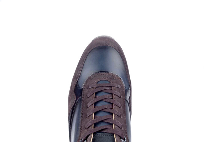Berkelmans schoenen is een van de nog weinig overgebleven merken uit de rijke Nederlandse schoenindustrie. Via de route leerlooier; schoenmaker; handelaar en fabrikant nog steeds aanwezig. Opgericht in 1890 en begin vorige eeuw bekend om zijn sociale beleid en goede werkomstandigheden. De druk van de concurrentie uit het buitenland doet Berkelmans jaren '70 beslissen een deel van de productie in Polen onder te brengen. Het stansen en snijden van het leer is een proces waar Berkelmans zelf als een van de weinige de kennis voor in huis heeft en gebeurd dan nog steeds in Nederland. De stans- en andere messen worden nog zelf gemaakt. Deze luxe sneaker uitgevoerd in subtiele leer/suède combinatie is een model voor fijnproevers; uitgevoerd in donkerblauw combinatie of donkerbruin.